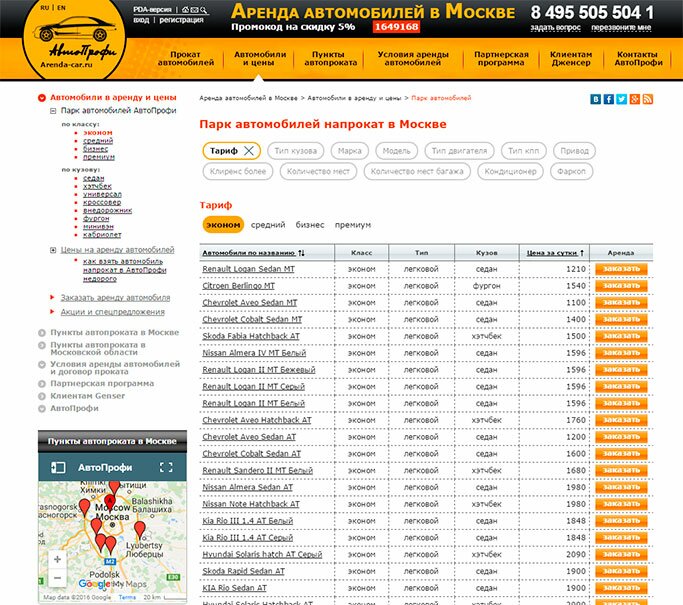 - Выбираем слева класс «эконом» и видим список, представленный марками «Рено», «Шевроле» и ГАЗ.